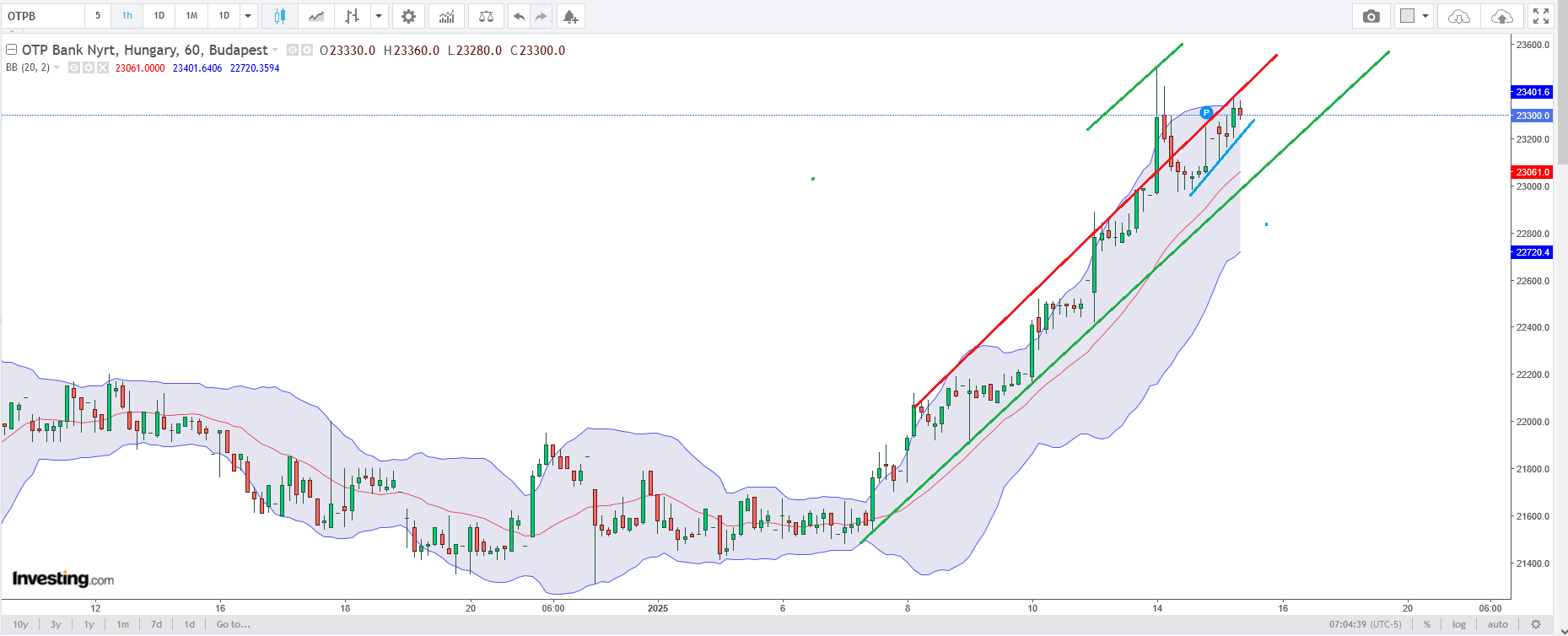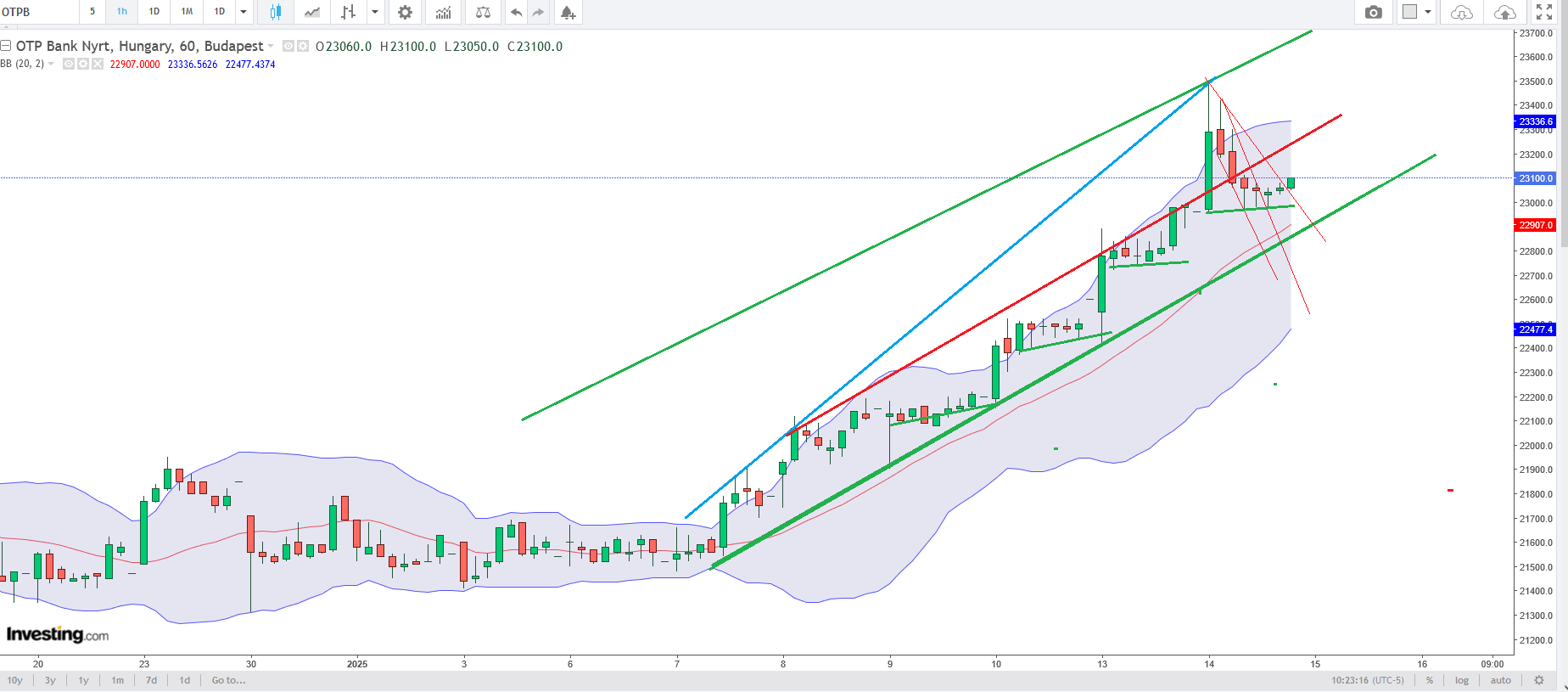 OTP 1H tegnapról: https://kephost.net/p/MTY3MTQzNQ.png Amire írtam,h a piros a "normális sáv", ez a kilövés...engedjétek el. Short STOP zárások, tipp, erre utalhat az, hogy kevés kötés volt, relatíve nagy elmozdulással. OTP 1H a mai nap hozzáadva: a vonalakat próbáltam ugyanúgy húzni+ picit leegyszerűsíteni: https://kephost.net/p/MTY3Mjk0MQ.png Jól látható, hogy az új impulzus Pont a NAGY zöld aljától indul, nem engedték lentebb: kék vonal. Pont 23300-nál sikerült lesceenshotolni, Órás testek teteje. TP-t ne kérdezzetek, fogalmam sincs mi lehet a vége.