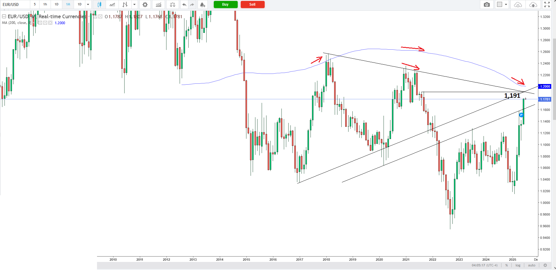 USD HUF 338.4 Reálisan nézve 1.2 MA200 hónapos. 1.193-al erőlködött az 1.2 előtt. 399/1.193 = 334,45 (én itt már dobnám), de természetesen rád van bízva.